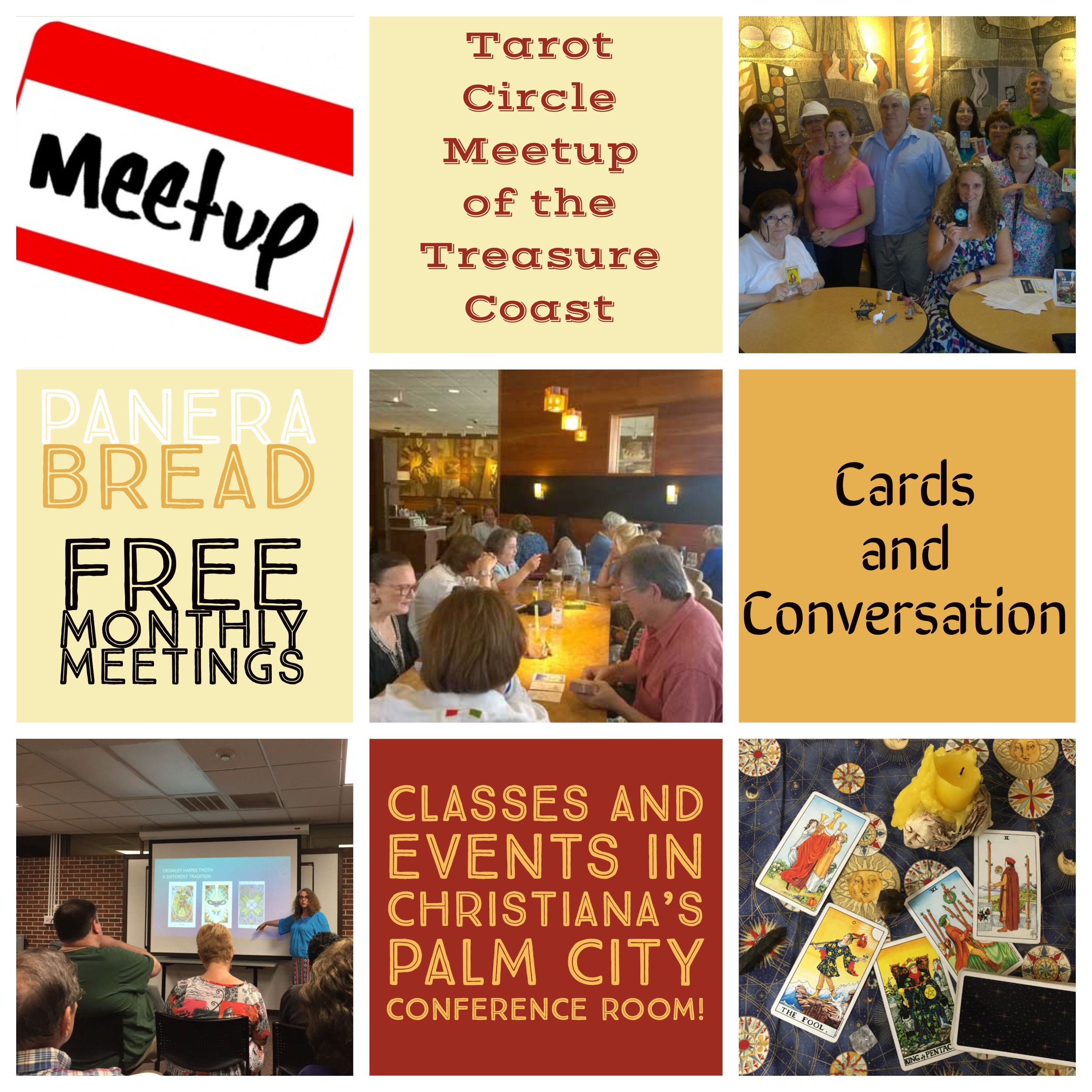 Cards and Conversation Tarot Circle of the Treasure Coast Meetup Sunday, June 2, 2019 4:00 PM 6:00 PM Panera Bread 2894 Southwest Town Center Way Palm City, FL, 34990 United States (map) Google Calendar ICS Tarot enthusiasts of all levels of experience are welcome to join us for readings, conversation, study, exercises and tarot fun! It’s free to attend. Bring a tarot deck or borrow one at the meeting. RSVP on Meetup.comSouth Florida Tarot MeetupTarot Circle of the Treasure Coast