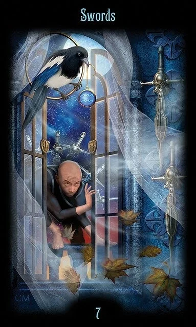I recently went to my tarot cards to answer a question that began, “What do I need to know about…?” The subject of my query wasn’t as important as the answer I received from of the most challenging cards in tarot for me to interpret. Seven of Swords.