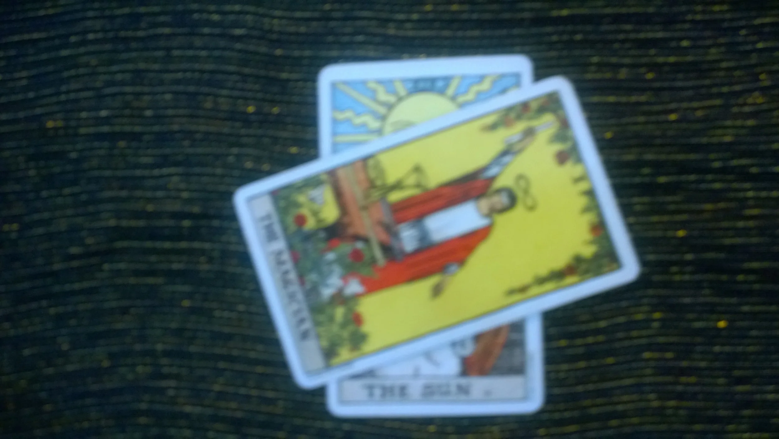 Since this Mercury transit across the Sun is planetary event, we could say that, for just a moment this week, these two tarot cards, in this configuration, are pertinent to each of us.