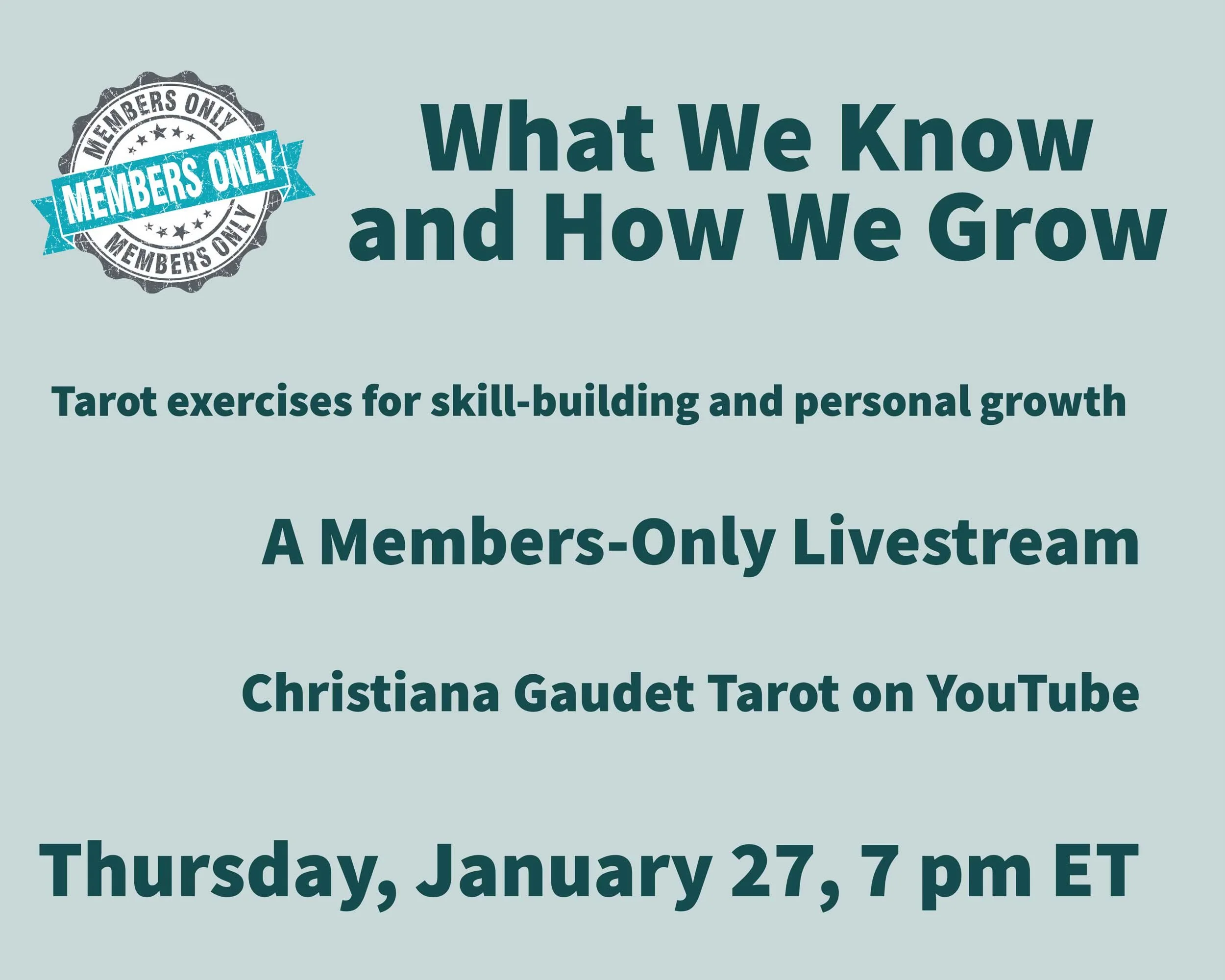 On Thursday, January 27 ,7 pm to 8 pm ET, all members of my YouTube are invited to a special members-only class called “What We Know and How We Grow”.