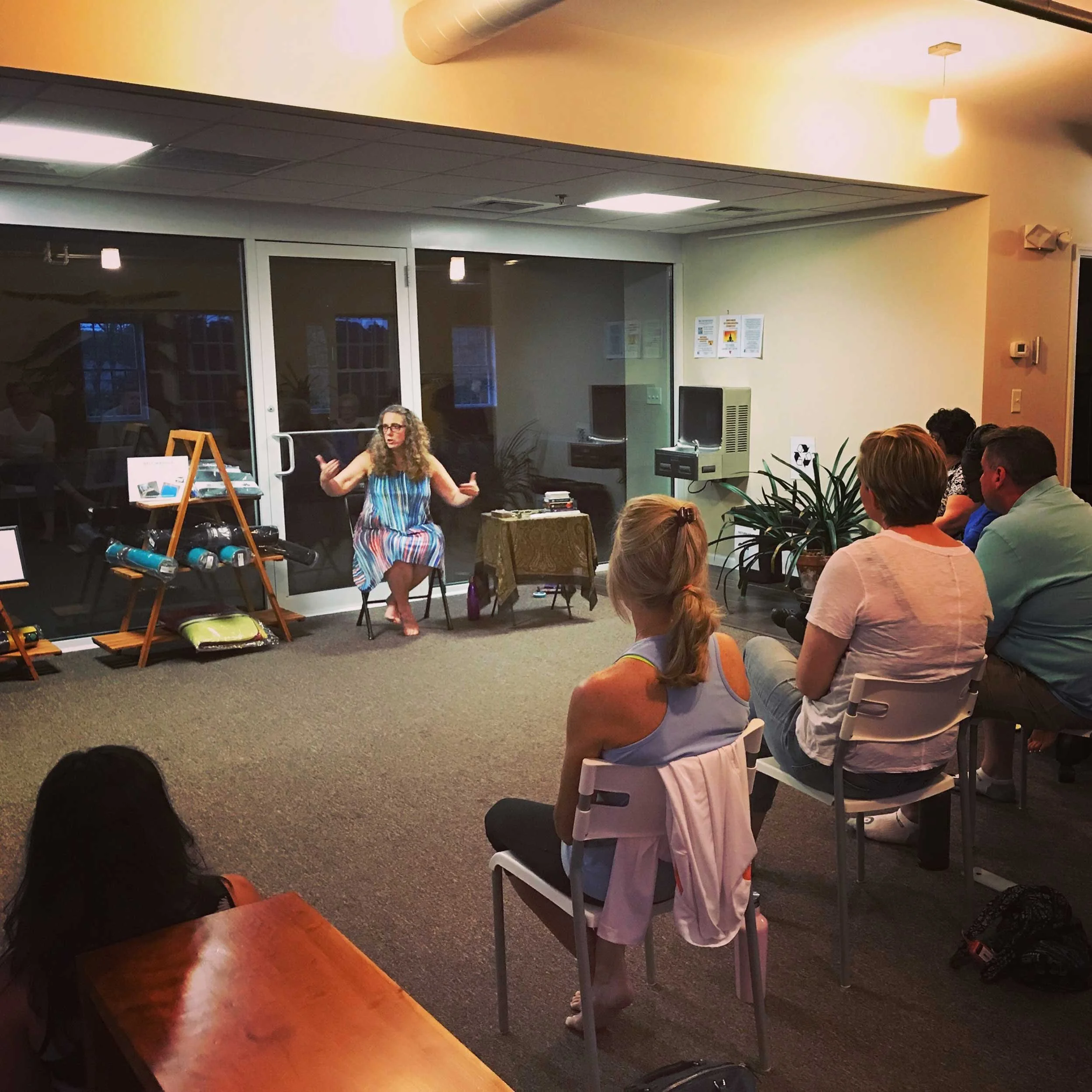 Christiana Gaudet teaching a class at a yoga studio in Madison, CT, 2016.