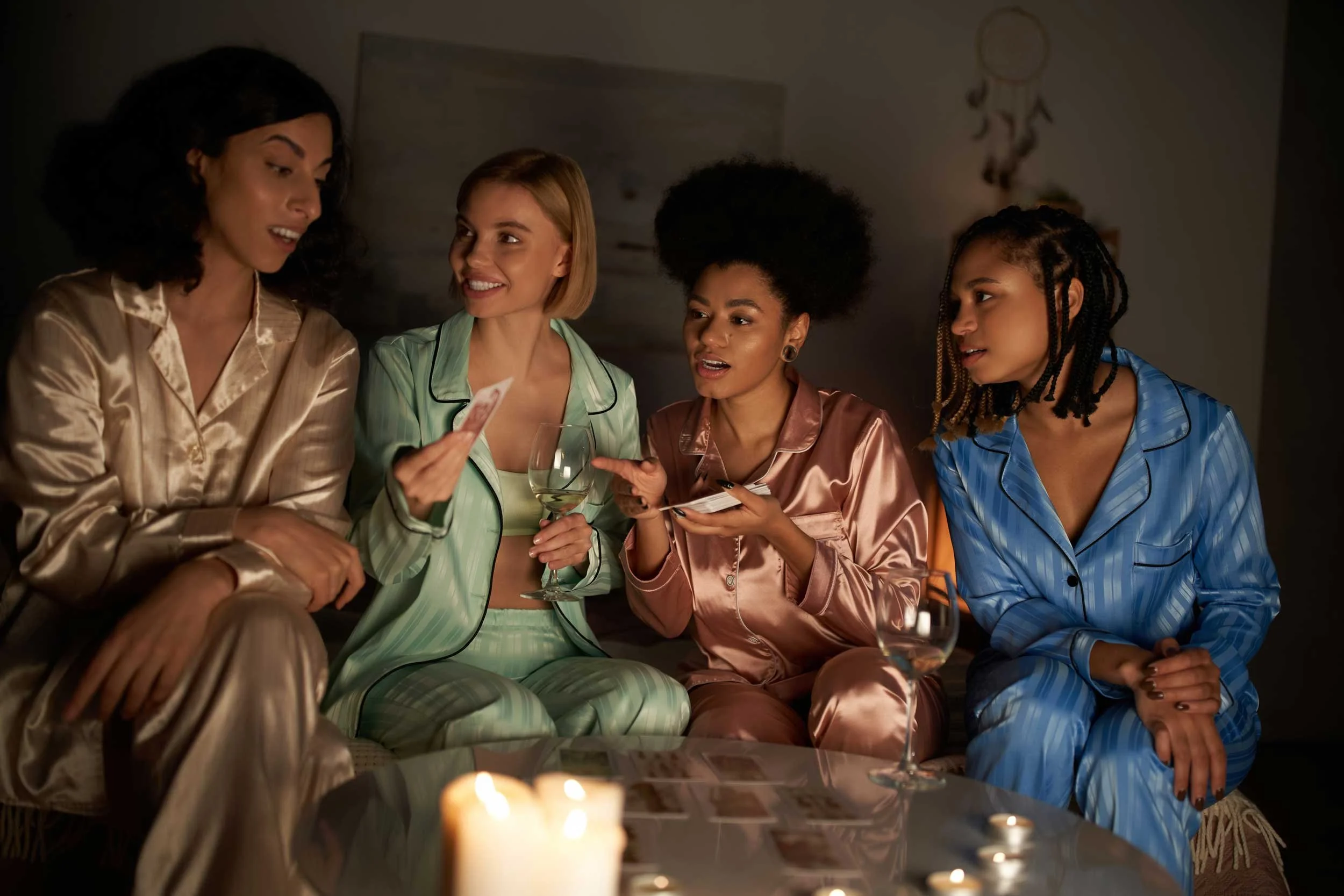 Friends gather for tea and tarot.