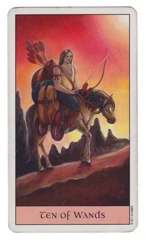 If you are in the process of working toward a long-term goal, the Ten of Wands offers encouragement. Now may be a difficult part of the journey, but hang in there. You will be successful if you simply keep moving forward.