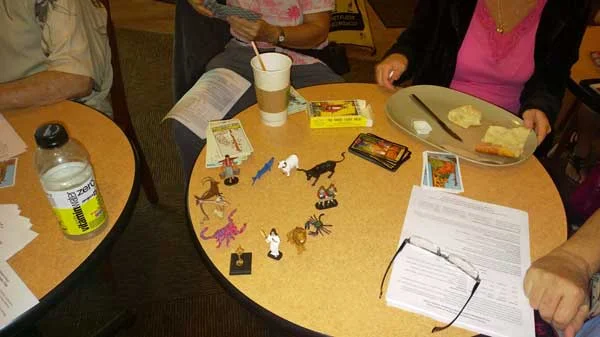 Story-telling. Pull four cards at random. Use the cards, in the order that you pulled them, to make up a fanciful story. You can work solely with the pictures, or include your interpretations to make your story.