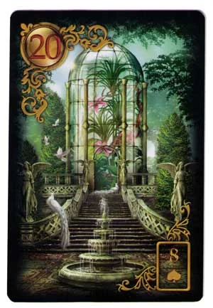We might think of gardens as being lovely places of retreat, but this is not so in the Lenormand system. Card Twenty, Garden, or Park, is about the public, social gatherings, networking and activities. Think of a garden or a park as a place to meet your friends, attend a concert or do business with the public.