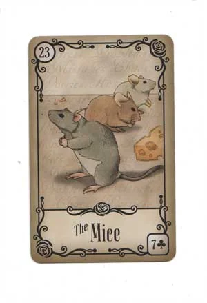 In many traditions, Mice is viewed as a negative card. This card can indicate theft, or slow loss over time.
