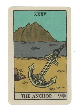 The playing card association for Anchor is less positive than the concept of safe harbor. The Nine of Spades usually refers to separation or failure.