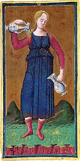 For this round of the Tarot Blog Hop, wrangled by Alison Cross, I’ve chosen to write about one of my favorite cards, Temperance. I am illustrating this post with some of my favorite Temperance images.